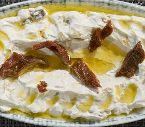 Kurutulmuş domates ve zeytinyağı eşliğinde
