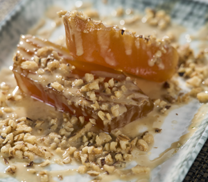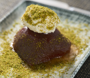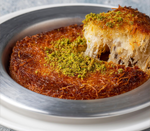 Yöresel kaymak ve toz antep fıstığı eşliğinde
